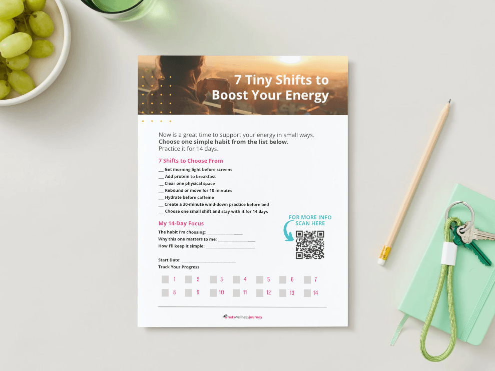 Energy doesn’t come from pushing harder. It comes from supporting your system as it transitions. So instead of trying to reinvent yourself this spring, let’s focus on something more doable — tiny shifts that boost your energy in ways that actually fit into real mom life.