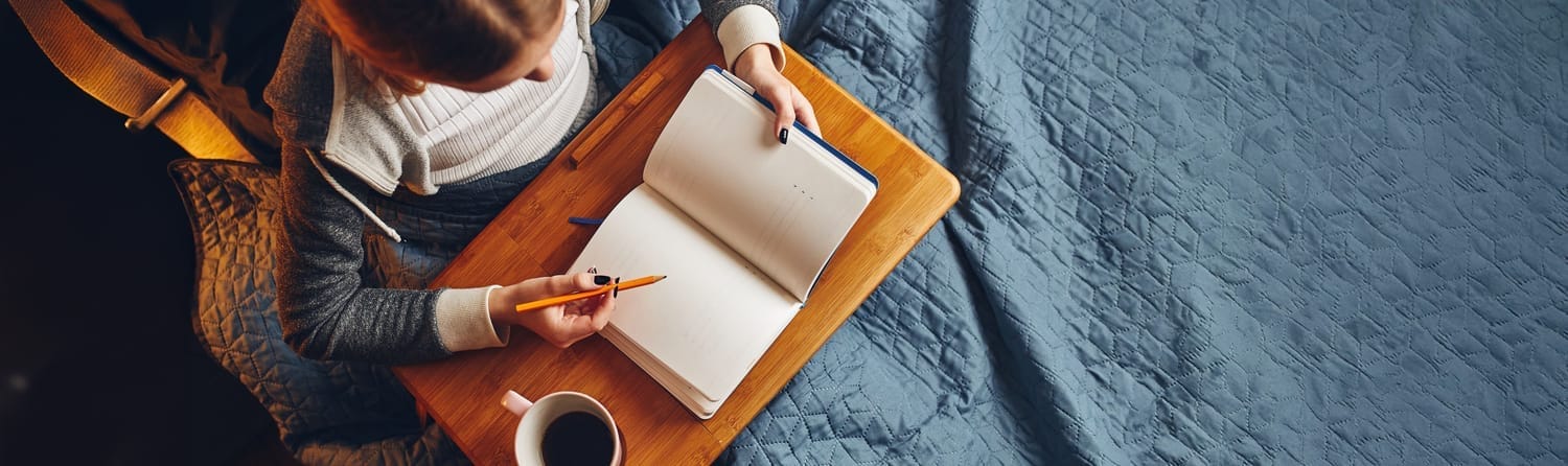 To start, set aside, just five minutes before bed to jot down three things you're grateful for from your day. The simple act can help shift your focus away from stress and anxiety, allowing you to relax and calm your mind. You can use a gratitude, journal or simply write on a piece of paper.