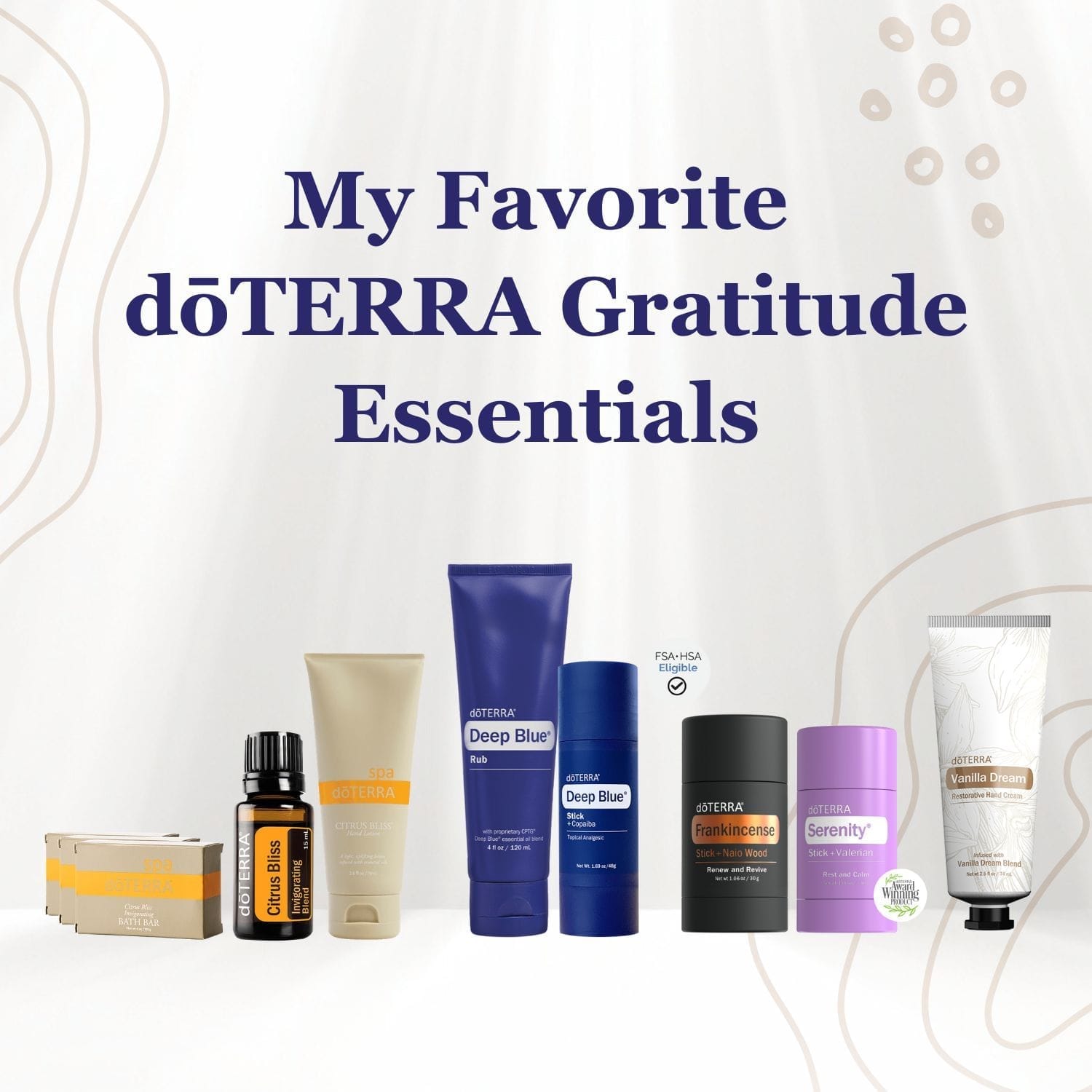 If you want to take your gratitude, practice, one step deeper, bring your senses into it. Use my favorite dōTERRA oil Citrus Bliss. I put a drop of it on my wrist just before my gratitude walk. It has a beautiful way of anchoring my emotions, and many of these oils help your body remember to stay calm even on the busiest days. Do I