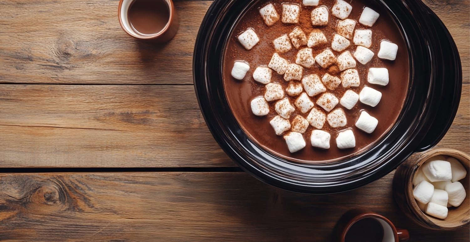 Add 6 cups whole milk, 2 cups heavy whipping cream, 1 (14-oz) can sweetened condensed milk, 1 tablespoon vanilla extract and 1 pinch salt to a 5 quart crockpot and whisk until well combined. Stir through 1 cup semi-sweet chocolate chips and 1 cup milk chocolate chips.